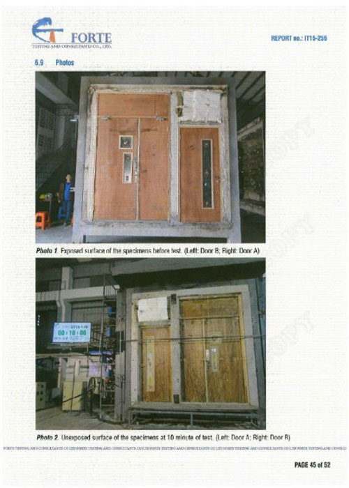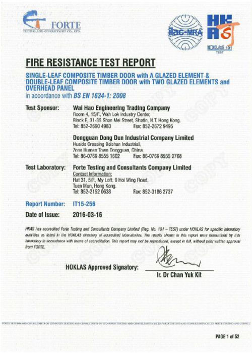 本公司創新發展之『火不怕』防火門及防火裝飾產品系列,乃採用先進的加工設備及工藝製造而成,新穎的產品設計結合優質蛭石防火板製造門芯,令門芯的防火時效更高、性能更可靠,該產品已通過BS476 Part22及BS EN 1634-1:2004防火性能測試達2小時以上。
